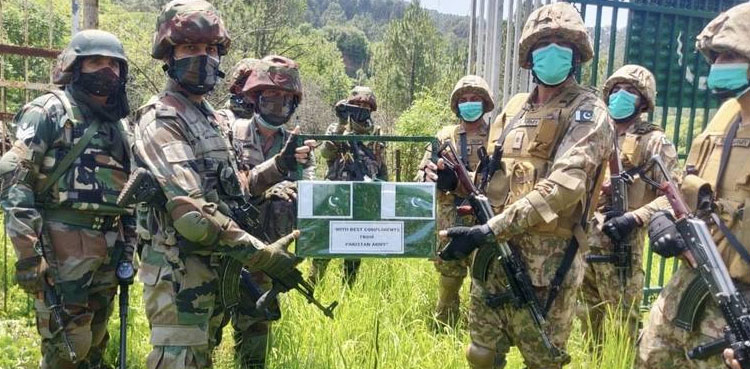 In line with a long-held tradition, officers of the Pakistan and Indian armies exchanged sweets and pleasantries along the Line of Control (LoC) in Jammu and Kashmir’s Poonch district on the occasion of Eidul Fitr.