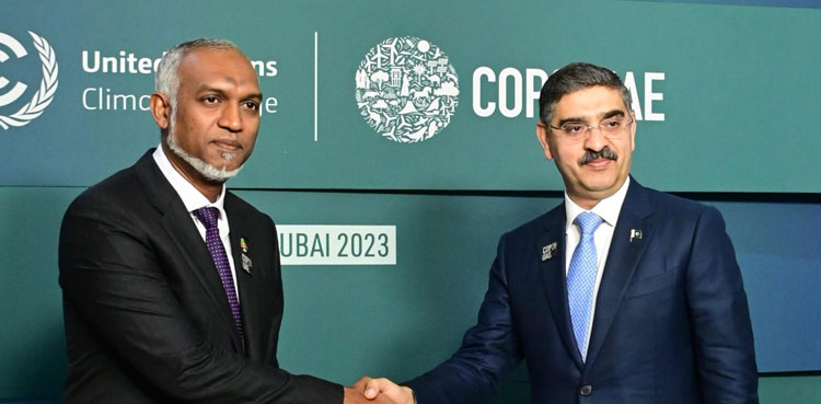 DUBAI: Caretaker Prime Minister (PM) Anwaarul Haq Kakar and President of Maldives Dr. Mohamed Muizzu on Saturday agreed to advance mutual cooperation in combating climate change.