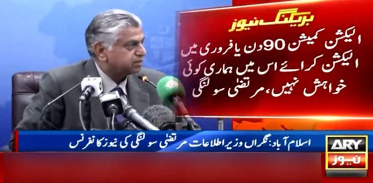 ISLAMABAD: Newly appointed caretaker Information Minister Murtaza Solangi on Friday asserted that he will step down from his post if the Election Commission of Pakistan (ECP) holds elections tomorrow, ARY News reported.