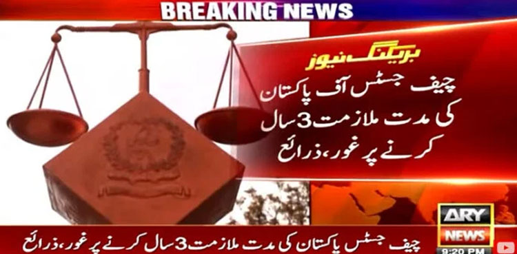 ISLAMABAD: The federal government is considering to consolidate the tenure of Chief Justice of Pakistan for three years as CJP Qazi Faez Isa is set to retire on Oct 25, 2024, ARY News reported on Saturday, citing sources.