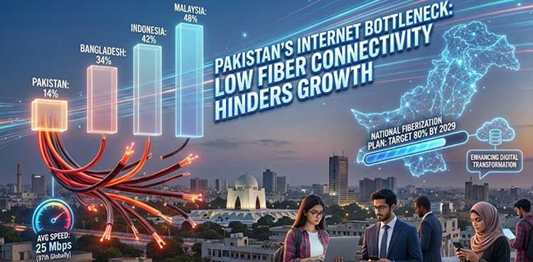 KARACHI: Pakistan has maintained low fiber connectivity among regional economies, which is one of the major factors behind the low internet speeds available to the masses across the country.