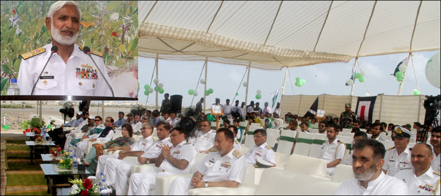 Chief of the Naval Staff Admiral Muhammad Zakaullah graced the occasion as chief guest and inaugurated Pakistan Navy Mangroves Plantation Campaign by planting sapling of mangroves.
