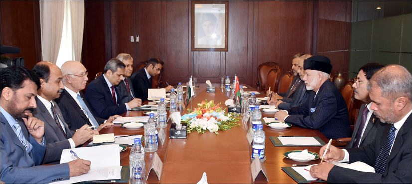 The understanding came at a meeting between Adviser to Prime Minister on Foreign Affairs Sartaj Aziz and Oman’s Foreign Minister Yousaf Bin Alawi Bin Abdullah in Islamabad .