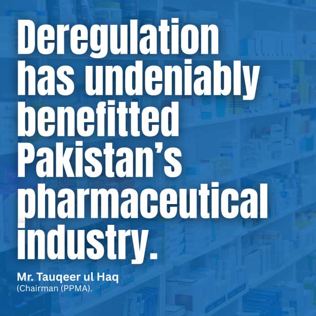 “Deregulation has undeniably benefitted Pakistan’s pharmaceutical industry,” says Mr. Tauqeer ul Haq, Chairman of the Pakistan Pharmaceutical Manufacturers’ Association (PPMA).