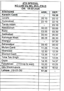 LAHORE: Pakistan Railways will run four special train services to assist passengers traveling to their hometowns for the upcoming Eidul Fitr 2026 celebrations.