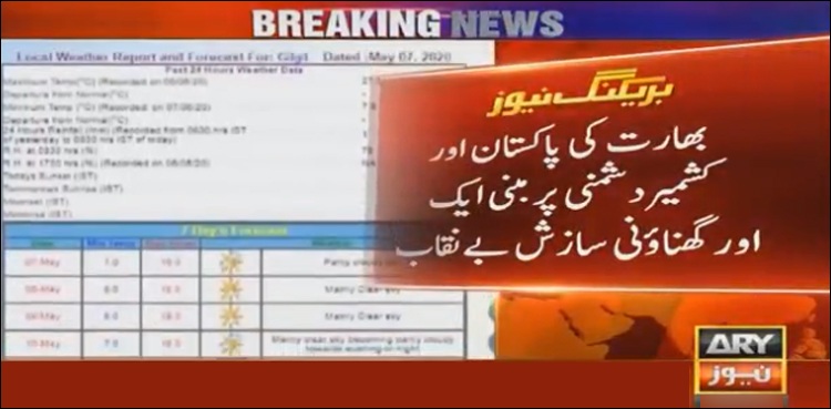 ISLAMABAD: Pakistan has rejected New Delhi move to include Azad Jammu and Kashmir and Gilgit-Baltistan in Indian TV weather bulletin, ARY News reported.