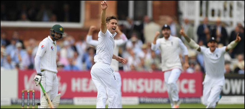 Pakistan were 76 for two at two at lunch on Thursday’s first day of the first Test, with Woakes having taken two wickets for 18 runs in six overs.
