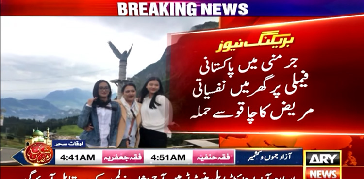 In a horrific incident, a Pakistan man was killed and his wife and daughter sustained injuries in a knife attack in Germany, ARY News reported.