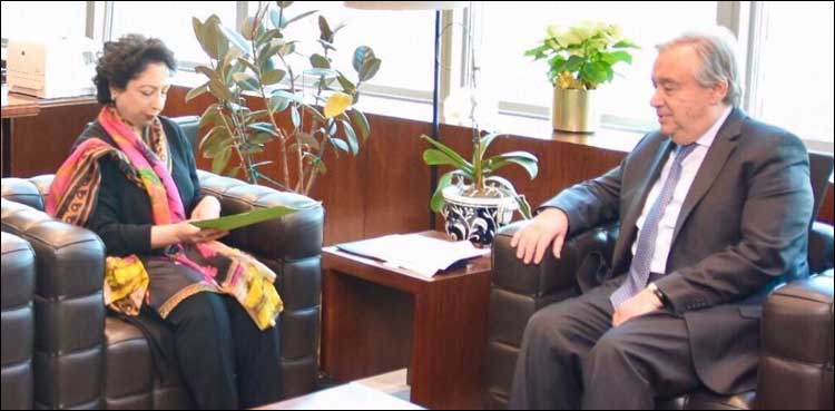 Maleeha Lodhi called on UN Secretary General Antonio Guterres at the United Nations. During the meeting, she briefed the secretary general about latest developments and the situation in occupied Jammu and Kashmir.