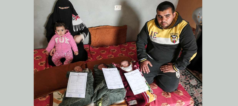 Nidal and Islam al-Saiqli from Khan Yunis in the Gaza Strip decided to name the three children Jerusalem, Capital and Palestine.