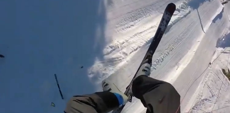 According to Daily Mail, his shadow to the left of the clip shows him getting higher and higher into the air. As he soars above the skiers below him, the cable comes into view. A loud crashing sound is heard as he hits it, sending his skis swinging up towards his head. The fabric wing appears to be stuck on the cable as he loosely swings over the snow.