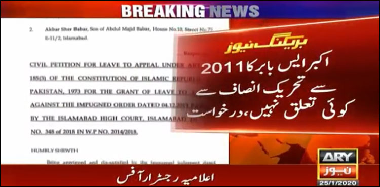 The petition in the apex court said that Akbar S. Babar have no links with the PTI since Year 2011. Babar had informed in an email about his resigning from the party, the petition said.