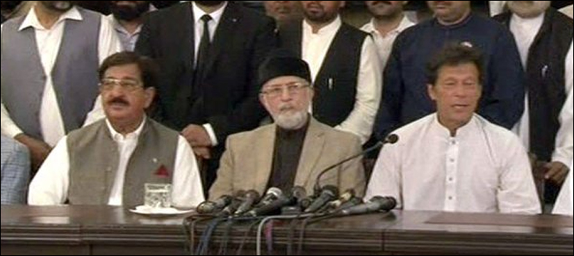 PTI chairman Imran Khan thanked Qadri for his support. Referring to the contempt notice issued by the Election Commission of Pakistan, he said that it was unheard of in a democratic society that a law refrains the party leader to campaign in an election.