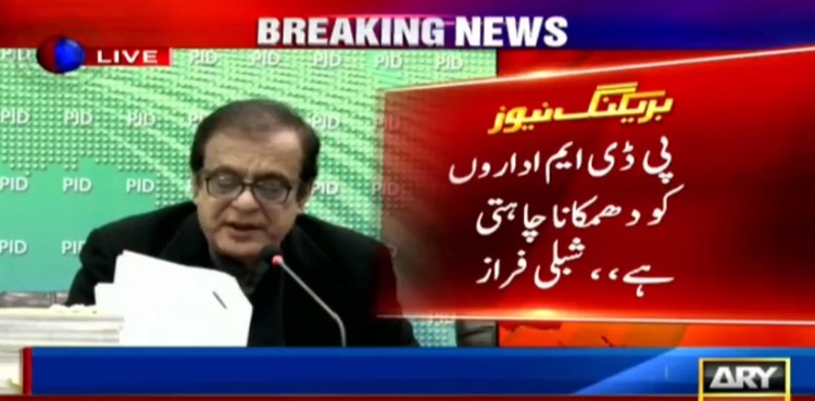 ISLAMABAD: Minister for Information and Broadcasting Syed Shibli Faraz on Sunday termed the scheduled protest of the Pakistan Democratic Movement (PDM) outside the office of the Election Commission of Pakistan (ECP) an attempt to intimidate state institutions, ARY News reported.