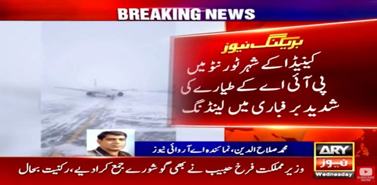 KARACHI: A Pakistan International Airlines (PIA) aircraft safely landed at Toronto amidst heavy snowfall, ARY News reported on Wednesday.