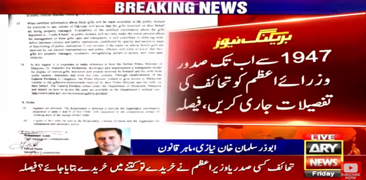 ISLAMABAD: Pakistan Information Commission (PIC) has taken a major decision to publicise the details of gifts received by the presidents and prime ministers of the country during their tenures, ARY News reported on Friday.