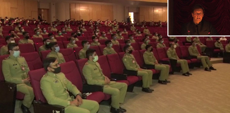 Addressing the officers, PM Khan said that Pakistan Army has produced unmatched results when pitched against its adversaries and successfully deterred the nefarious designs of Pakistan’s enemies.