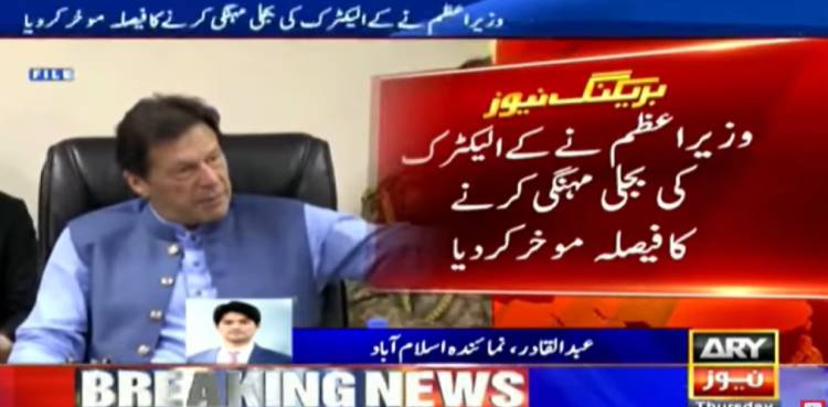 ISLAMABAD: Prime Minister Imran Khan on Thursday directed to defer an Economic Coordination Committee (ECC) decision to raise the tariff for K-Electric consumers by Rs 2.79 per unit, ARY NEWS reported citing sources.