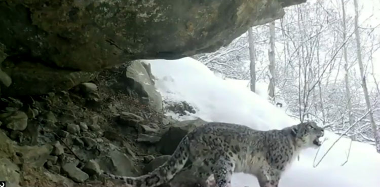 “Rare footage of the shy snow leopard in Khaplu, GB,” the premier captioned the footage shared on his official Twitter handle.