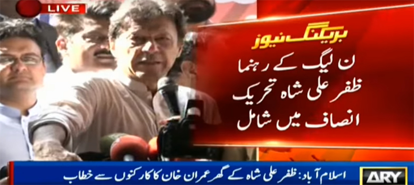 Flanked by PTI chief Imran Khan and PTI’s senior leadership, Zafar Ali Shah announced to leave PML-N because “Pakistan needs a leader like Imran Khan”.