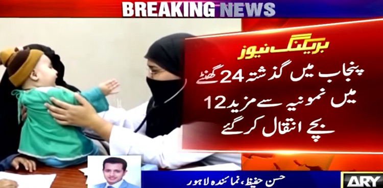 Twelve more children lost their lives due to pneumonia in Punjab during the last 24 hours due to an increase in cold weather, ARY News reported on Tuesday, quoting provincial health department.