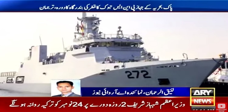 Upon arrival at the Qatari port, the ship was received by Pakistani diplomatic officials and senior officers of the host Navy.