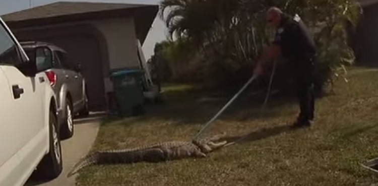 The Cape Coral Police Department shared video showing Sgt. Kurt Fundermark working to wrangle the alligator spotted at the Cape Coral home.