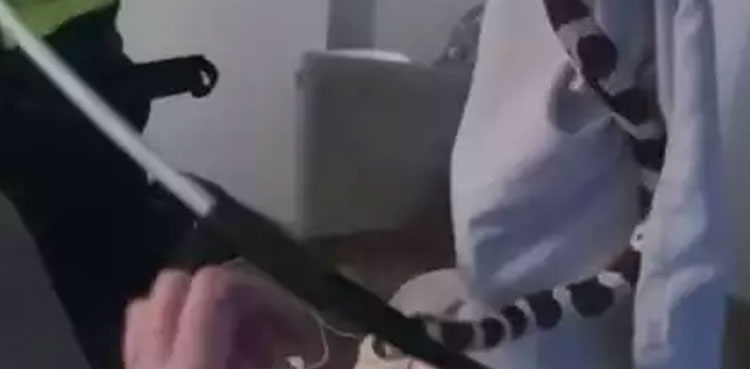 Police officers catch 5-ft-long snake from family's living room