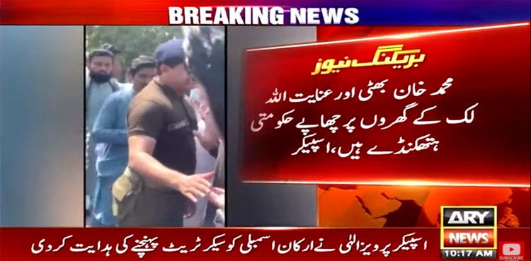 The police also went to the houses of Secretary Punjab Assembly Muhammad Khan Bhatti, and Secretary Coordination Inayat Ullah, however, remained unsuccessful in nabbing them.