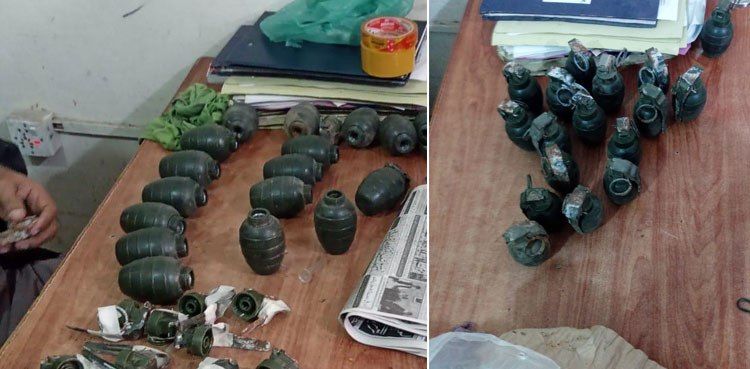 SSP City Sarfaraz Nawaz said that they have recovered a shopper carrying 20 hand grenades from a garbage dump in the Dhobi Ghat area of Garden.