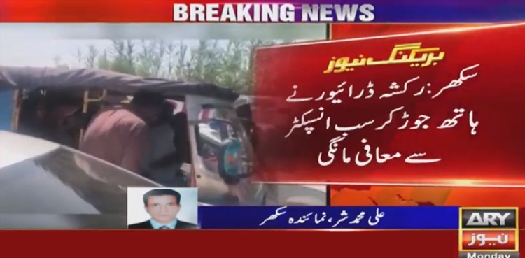 SUKKUR: A police sub-inspector was caught on camera badly torturing a poor rickshaw driver in Sukkur, ARY NEWS reported on Monday.