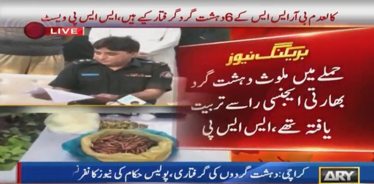 Senior Superintendent of the Police (SSP) West Fida Hussain Janwari claimed arrest of six terrorists belonging to outlawed Baloch Raaji Aajoi Sangar (BRAS).