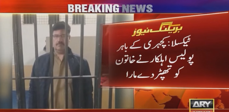 RAWALPINDI: Policeman Imtiaz Nasir, who thrashed and abused an elderly woman in Taxila, has been dismissed from his services, ARY News reported.