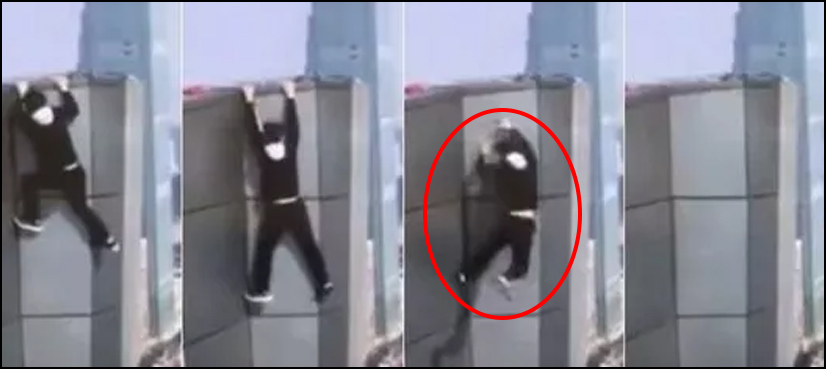 The scene was recorded by a camera Wu had installed on the other part of the building to capture the daring stunt, according to a Dailymail report.