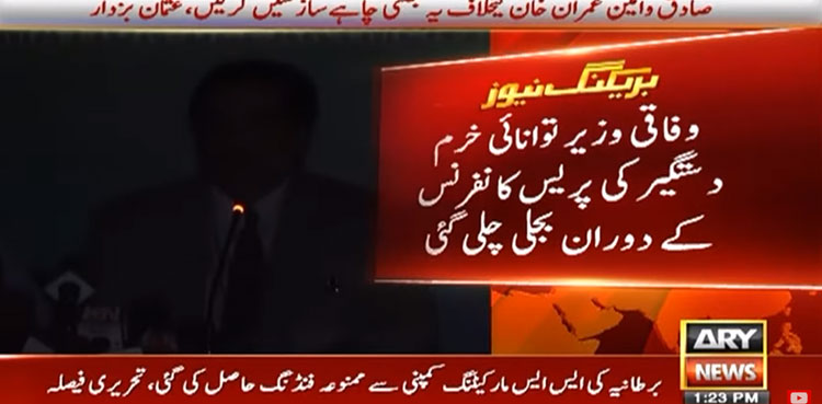 ISLAMABAD: The press conference of Power Minister Khurram Dastgir was marred by a power outage, ARY News reported on Tuesday.