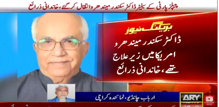 Senior Pakistan Peoples Party (PPP) leader and Senator Dr Sikandar Ali Mandhro passed away on Saturday in United States (US).