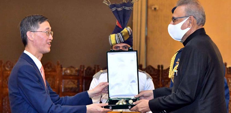 ISLAMABAD: In recognition of the services made by the outgoing Chinese ambassador for improving Pakistan-China relations, President Dr. Arif Alvi on Tuesday conferred the Hilal-e-Pakistan award on Yao Jing at a special investiture ceremony held at Aiwan-e-Sadr, ARY News report.