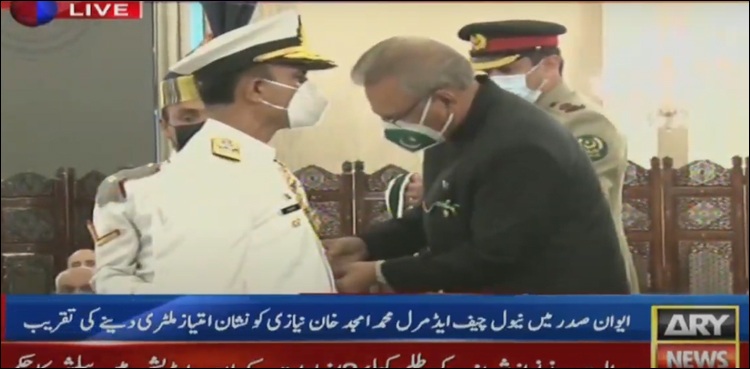 ISLAMABAD: President Dr. Arif Alvi has conferred Nishan-i-Imtiaz (Military) on Naval Chief Admiral Amjad Khan Niazi on Thursday.