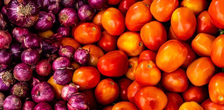 According to details, the prices of onion and tomatoes have witnessed a sharp decline after trucks carrying the vegetables arrived in Pakistan. Almost 70 trucks of onion and 50 tomatoes have arrived from Iran and Afghanistan.
