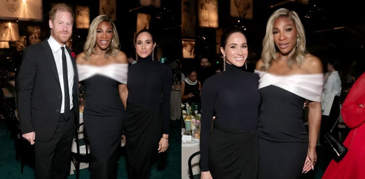 The Duke and Duchess skipped the “red carpet” and headed straight inside where they posed for photos with their pal, tennis star Serena Williams, who was recognized with the Giving Tree Award whixh “honours a celebrity mother who embodies the Baby2Baby mission”.