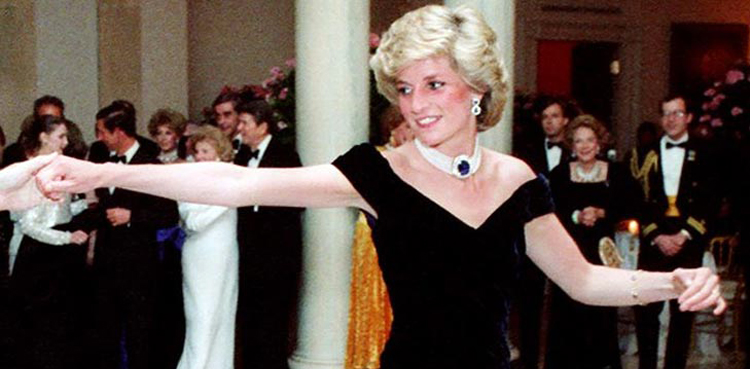 LONDON: A midnight blue velvet gown worn by Princess Diana as she danced with John Travolta at the White House got the cold shoulder at auction, the Kerry Taylor house said Monday.