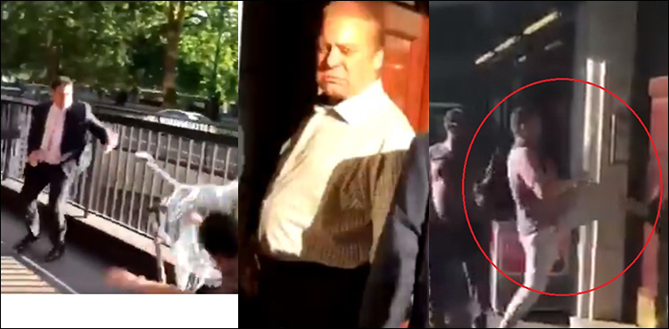 One of the protesters was filmed kicked the door of the flat shortly after Mr. Nawaz Sharif entered through it. One incensed protester also threw a shopping cart outside the apartment gate, followed by exchange of abuses between Sharif’s security officers and the protesting man.