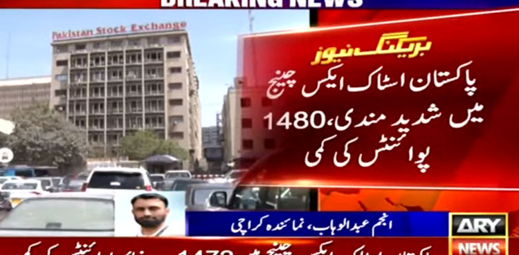 KARACHI: Pakistan Stock Exchange (PSX) on Monday fell like a house of cards and lost over 1200 points amid country’s tense political situation and Russia-Ukraine conflict, ARY News reported.