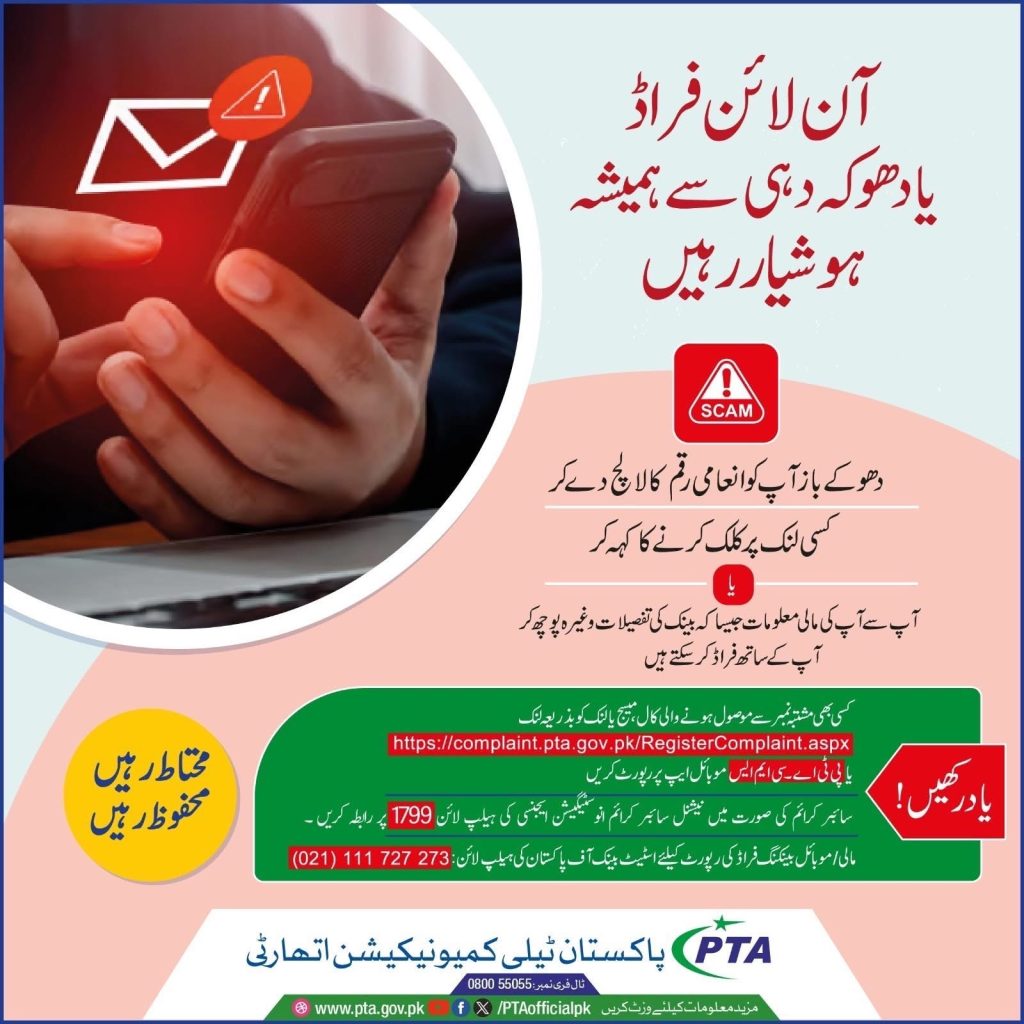 The PTA urging people to remain caution and safe has directed them to file their complaints regarding suspicious calls or message at the authority website by click this link http:.//complaint.pta.gov.pk/RegisterComplaint.aspx or at PTA mobile app.