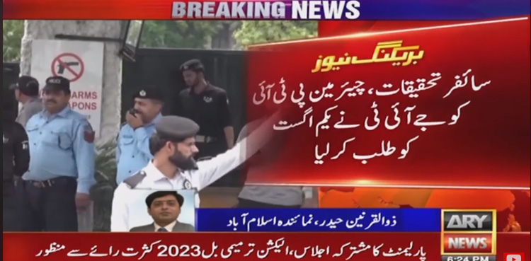 ISLAMABAD: Pakistan Tehreek-e-Insaf (PTI) Chairman and former prime minister is summoned by Joint Investigation Team (JIT) in cypher case on August 1, ARY News reported.