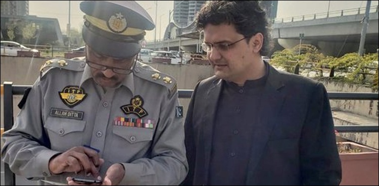 The incident was first shared on Twitter, showing the Senator standing alongside an Islamabad traffic cop as he issues a challan to Faisal Javed over the violation.