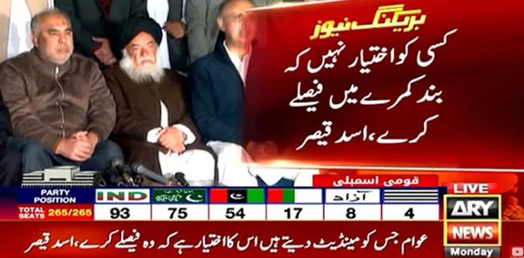 “Liaquat Chatha’s allegations show how big the scale of rigging was,” he said, calling the Feb polls ‘most controversial’ one. Asad Qaiser expressed hope that the courts will give them their due rights.