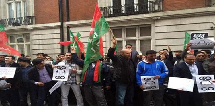 During the protest, Pakistan Tehreek-e-Insaf (PTI) filed a petition in the Pakistan High Commission expressing concern over the human rights situation in Pakistan.