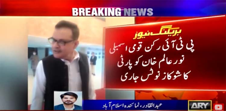 PESHAWAR: Pakistan Tehreek-i-Insaf (PTI) has issued a show-cause notice to its Member of National Assembly (MNA) Noor Alam Khan over tirade against party leadership during the assembly session, ARY NEWS reported.