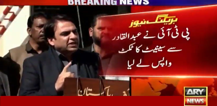 From Islamabad, Federal Minister for Finance and Revenue, Abdul Hafeez Shaikh has been finalised as PTI candidate for General Seat and Barrister Ali Zafar has been awarded PTI ticket for Senate Election for Technocrat Seat, while Dr Zarqa will be the candidate of PTI on reserved seat for women.
